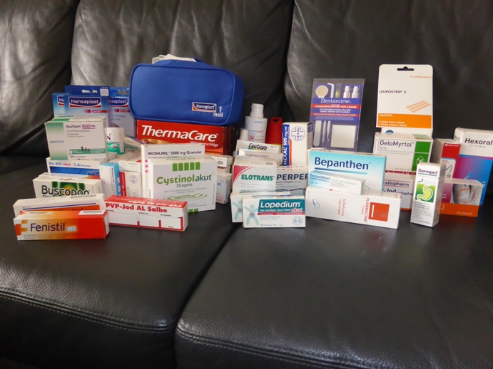 Die Bordapotheke ist jetzt auch komplett - mit freundlicher Unterstützung unseres Hausarztes und einer befreundeten Apothekerin, danke Kirsten! Auch eine nette Nachbarin, die Ärztin ist, hat zur Komplettierung beigetragen, herzlichen Dank nochmal!