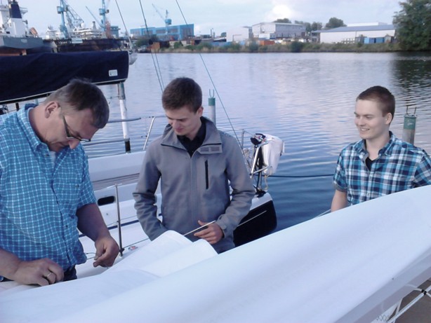 Die Vorbereitungen laufen weiter auf Hochtouren. Auch unsere Söhne Henning und Malte werden mit eingespannt und helfen z. B. beim Einziehen der Segellatten beim neuen Großsegel. Es bleibt bei unserem geplanten Abreisetermin. Am Freitag, 06.06.2014, legen wir in unserem Heimatverein, dem Wassersportverein Wulsdorf, in Bremerhaven gegen 18.30 Uhr ab. Gegen 19 Uhr wollen wir in die Fischereihafenschleuse fahren, und wenn alles klappt, werden wir ca. um 19.20 Uhr die Schleuse verlassen und auf die Weser hinausfahren. Wenn alles gut läuft, werden wir mit der "Amazone" im August 2015 hier wieder aufkreuzen.