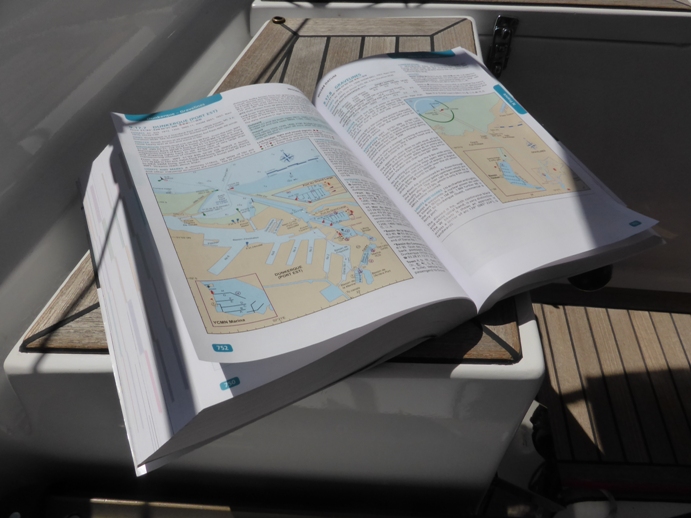 Das zurzeit meistgelesene Buch an Bord der Amazone: Der Reeds Nautical Almanac. 1.000 Seiten dick, 2 kg schwer; darin enthalten sind alle wichtigen Informationen über Häfen, Küsten, Tiden etc. für viele verschiedene Seegebiete