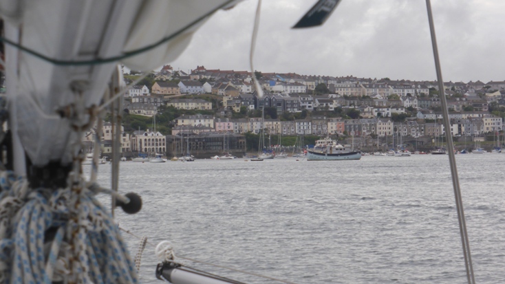 Der Wind nahm am frühen Abend immer mehr ab, und so tuckerten wir unter Motor zwischen den grünen Hügeln und der Steilküste in die Flussmündung nach Falmouth. Im "Visitors Yacht Haven" waren die wenigen Boxen schon belegt und im Päckchen liegen wollten wir auch nicht. Wir hatten schon so etwas geahnt und fuhren etwa 1,5 Seemeilen weiter den Pennryn River hinauf zur Falmouth Marina. Links und rechts vom Fahrwasser ankerten unzählige große und kleine Boote.