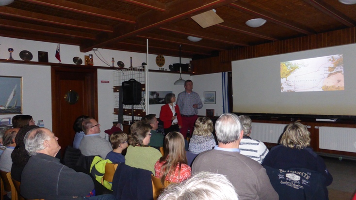 Zum vierten und letzten Mal haben wir gestern die Utensilien für den Vortrag ins Auto geladen. Diesmal war wieder das Bootshaus des OSV unser Ziel. Knapp 70 interessierte Freunde, Verwandte, Nachbarn, Kolleginnen und Kollegen, Segelkameradinnen und -kameraden und Blogleserinnen und -leser waren gekommen. Gemeinsam gingen wir noch einmal auf die Reise, fuhren durchs beschauliche Holland, warteten in Frankreich auf gutes Wetter für die Biskaya-Überquerung, staunten über halbe Fische am Haken und viel Seegras auf dem Atlantik, backten auf hoher See fröhlich Brot, spürten ein wenig von der gelassenen karibischen Lebenseinstellung, lernten die Jungs von der "Cello" kennen, genossen die herrlichen, Palmen gesäumten weißen Strände, fühlten den Abschiedsschmerz bei der Abreise aus der Karibik, erschraken uns bei der Kollision mit dem Wal, segelten mit 10 Knoten bei aufgewühlter See durch den Solent, freuten uns, den einzigen Sturm der Reise in einer sicheren Box auf Texel erlebt zu haben und erreichten wohlbehalten nach 14 Monaten den Heimathafen, wo uns ein ganz grandioser Empfang bereitet wurde.