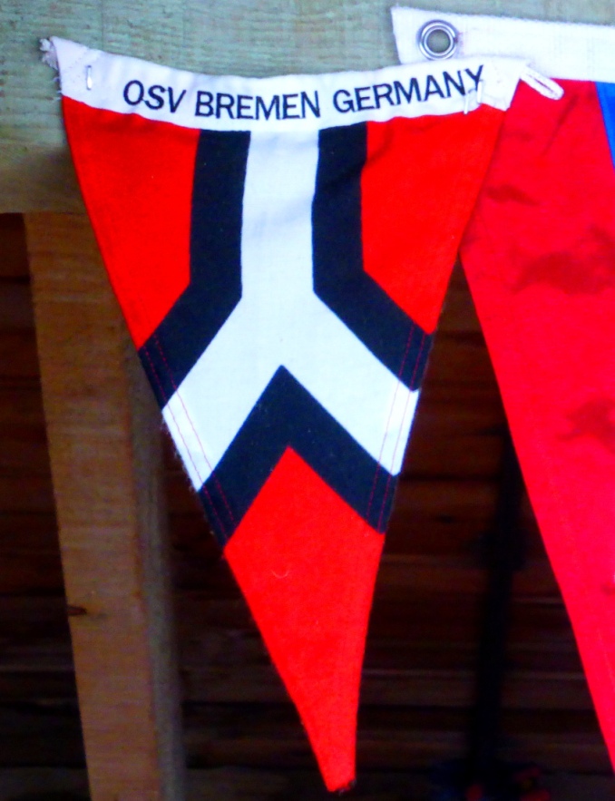 So sind zum Beispiel Elke und Walter mit ihrer Segelyacht "Sunrise" jetzt gerade in den British Virgin Islands unterwegs. Sie waren auch in dem wunderschönen Resort in Bitter End im Virgin Gorda Sound. Im dortigen Yachtclub hatten wir ja einen der fünf OSV-Stander hinterlassen. Elke und Walter habe ihn dort entdeckt und uns ein Foto geschickt: