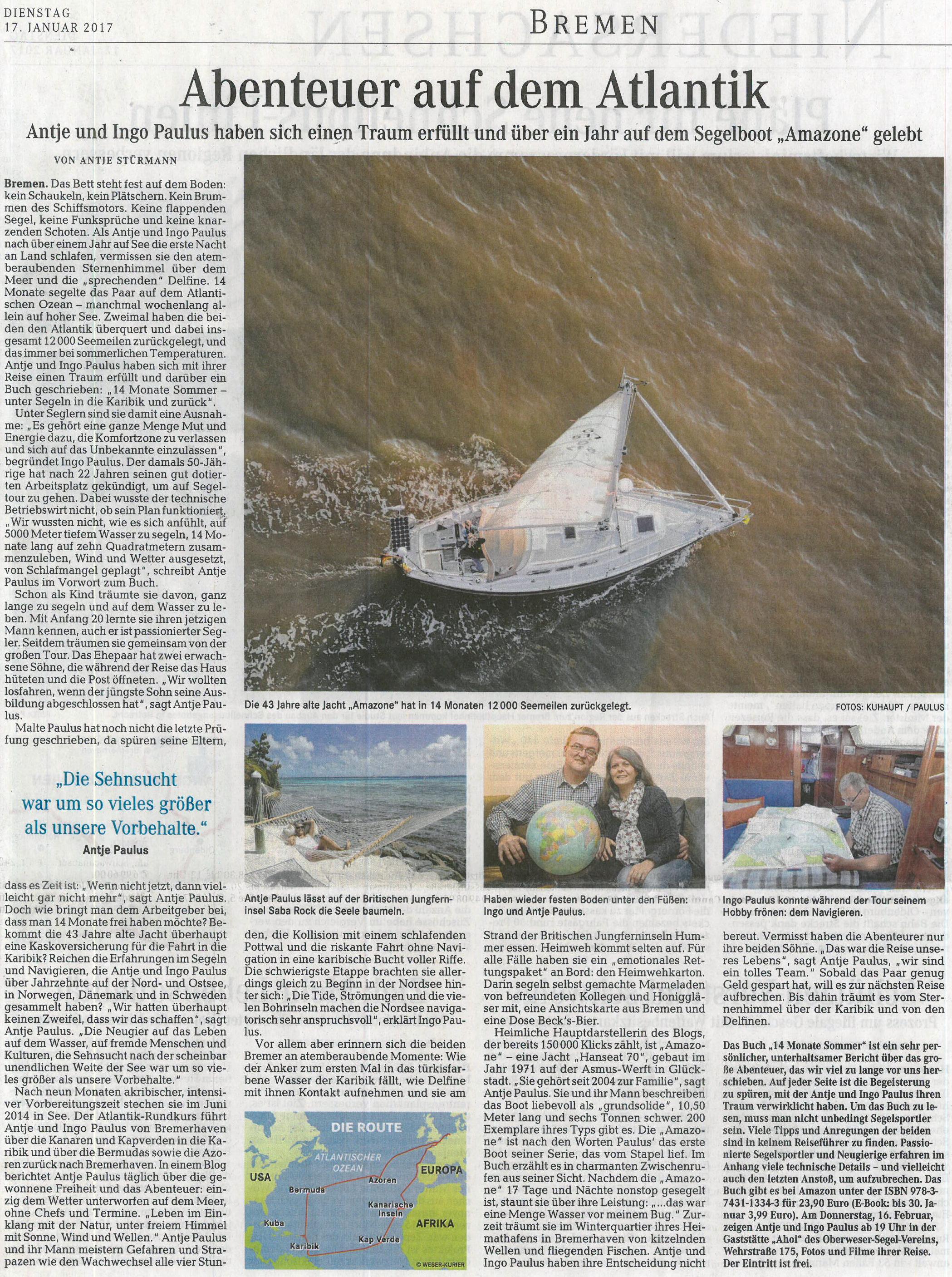 Erste Presse-Rezension von Antje Stürmann aus dem Artikel vom Weser-Kurier vom 17.01.2017: