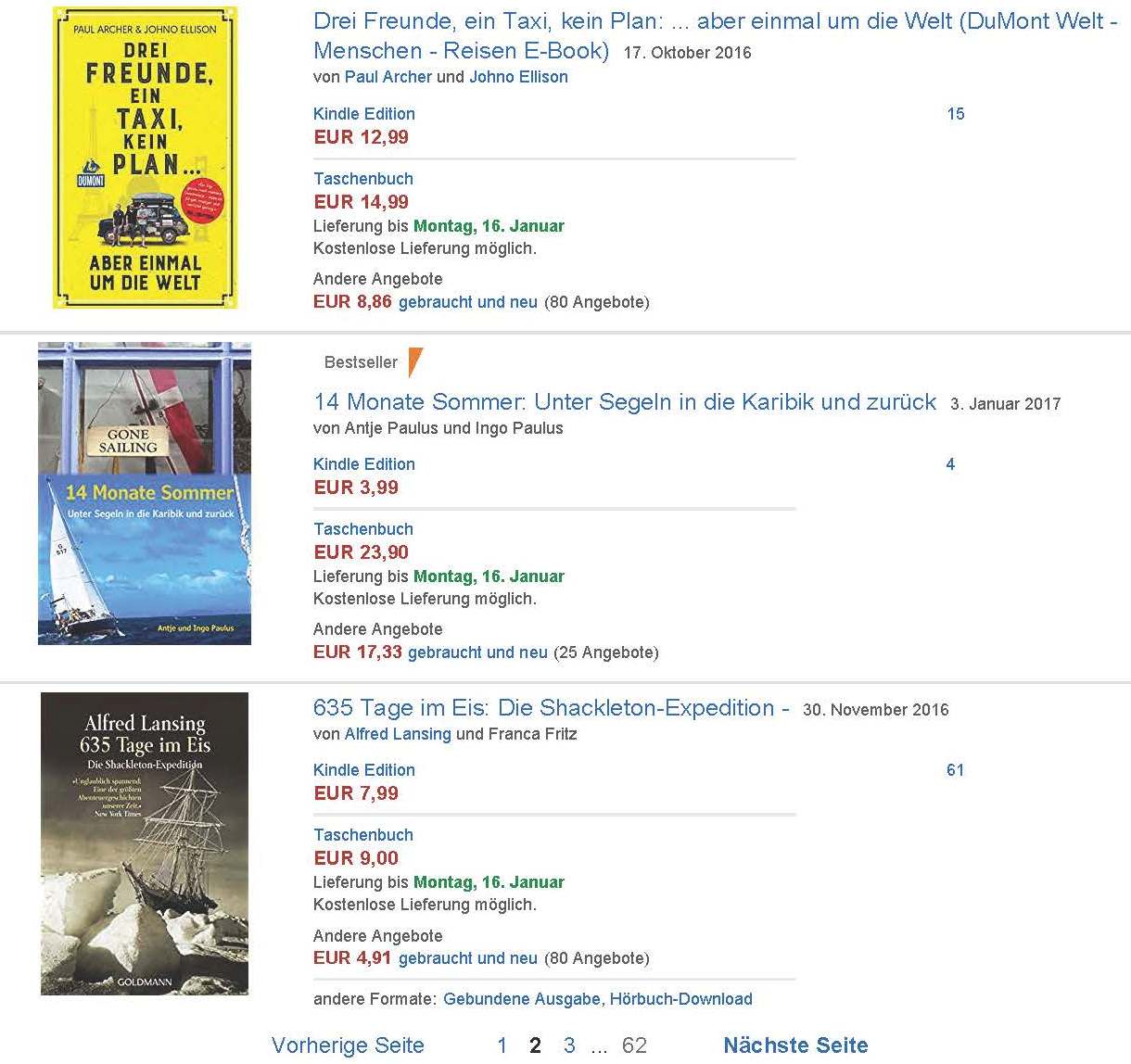 Auszug aus der Suche bei Amazon unter: Reise & Abenteuer: