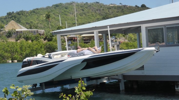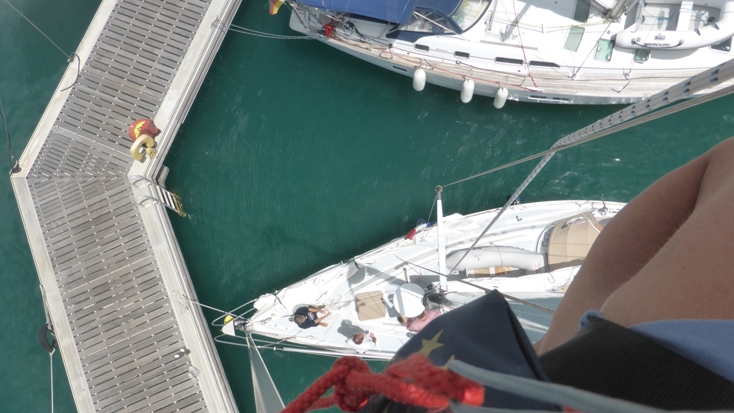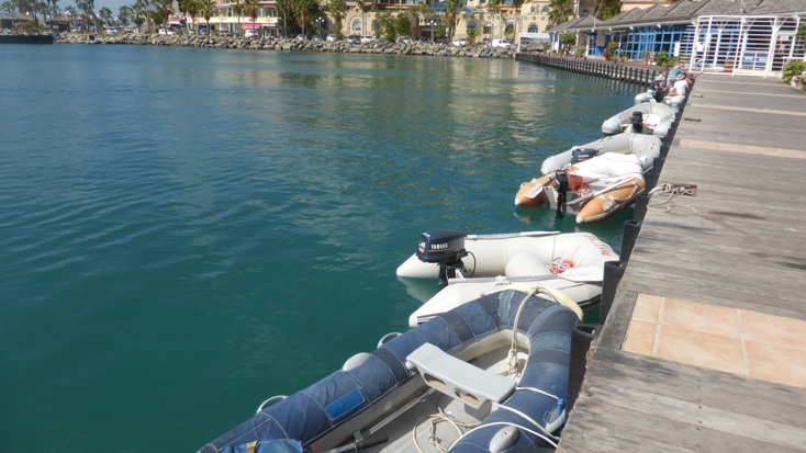 Dann ist aber endlich alles erledigt und wir können den Dockmaster anfunken, dass wir gerne ablegen möchten. Vielleicht denkt jetzt die oder der eine oder andere: Sind die beiden jetzt ganz verrückt geworden, erst Golf Cart fahren und jetzt brammig den Dockmaster anfunken, damit er beim Ablegen behilflich ist?! Nein, verrückt sind wir nicht, jedenfalls nicht verrückter als sonst. Es wird hier ganz einfach so gewünscht, was auch ganz praktisch ist - so kann der Dockmaster vom Schlauchboot aus die Heckleine des Nachbarn wieder über den Pfahl hängen, sobald wir aus der Box gefahren sind.