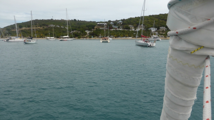 Auch wenn hier alles ganz wunderbar ist, heißt es schon wieder auf zu neuen Ufern. Wir wollen heute die Marina verlassen, eine Nacht vor Anker in der Bucht vor Jolly Harbour verbringen und morgen nach Nevis weitersegeln. Es ist aber noch einiges zu erledigen bevor es losgehen kann. Die Trinkwasservorräte und Solarduschen müssen aufgefüllt werden, das Liegegeld muss abgerechnet werden, die Ausklarierung steht an und unsere Gasflasche, die wir hier füllen lassen haben, muss noch abgeholt werden. Außerdem wollen wir auch noch beim Supermarkt einkaufen.