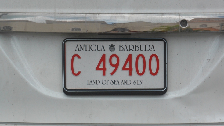 Die Autokennzeichen auf Antigua - alle mit dem Zusatz "Land of Sea und Sun":