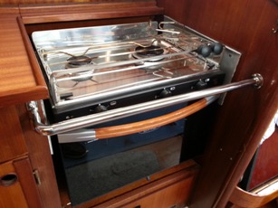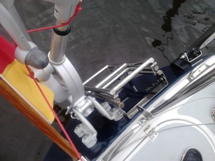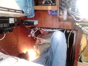 Die "Amazone" ist immer noch eine schwimmende Baustelle, die Verkabelung der neuen Geräte dauert doch länger, als angenommen. Nach zwei durchgearbeiteten Tagen funktioniert der neue AIS-Sender dann leider erstmal nicht. Der Fehler ist aber gefunden, und nun sollte es alles funktionieren. Auch der neue Bügel vor dem Herd ist angebaut. Unser Edelstahlfachmann hat uns auch noch eine neue Halterung für die vorhandene, modifizierte Badeleiter angefertigt.