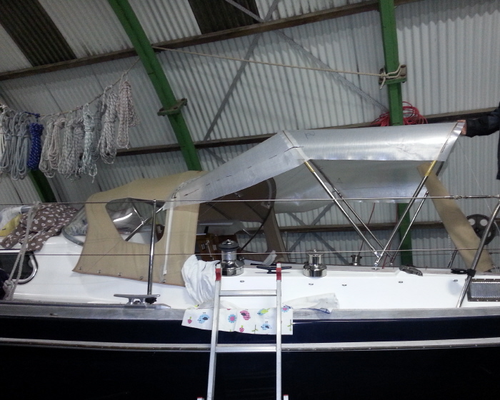 Morgen kommt unser Bremer Segelmacher zum Boot in die Halle , um eine Schablone für unser neues Bimini zu fertigen. Es sind aber auch noch weitere Punkte für uns zu erledigen: