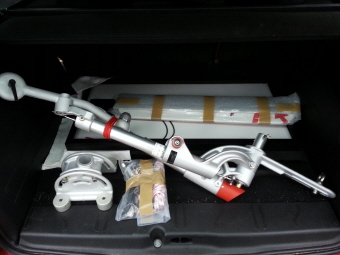 Wir haben jetzt ein Standard-Solarpanel mit 100 Watt Leistung zum Einhängen in die Reling umgebaut. Mit den "Fensteraufstellern" lässt sich auch der Winkel zur Sonne einstellen.