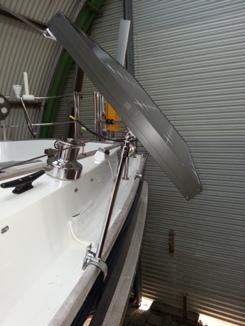 Der Einsatz ist in erster Linie beim Ankern und bei Schwachwind, wenn der Windgenerator und das andere Solarpanel am Heck nicht genug Leistung bringen.