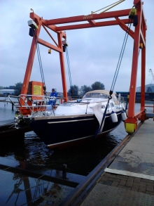 Gestern ist die Amazone bei herrlichem Wetter aus dem Wasser gekommen und steht jetzt wohlbehalten auf ihrem Stammplatz in der Winterlagerhalle. Ein Boot, das erst im Kran hängt und dann an Land bewegt wird, wirkt auf mich immer irgendwie unbeholfen. Ich glaube, im Wasser fühlt es sich wesentlich wohler!