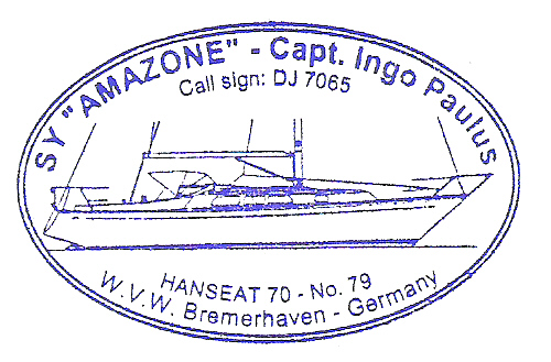 Schon oft haben wir Segelkameraden beneidet, die einen Schiffs-Stempel besitzen und damit z. B. ihre Seekarten und Bücher kennzeichnen. Zukünftig könnten wir solch einen Stempel auch sehr gut bei den Einklarierungen gebrauchen. Also hat Ingo einen Stempel nach Empfehlungen von Langfahrern entworfen, und ich finde ihn sehr gelungen! Außerdem kann es ja nicht schaden, einen Stempel und ein Stempelkissen an Bord zu haben - so komme ich nicht aus der Übung!