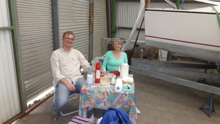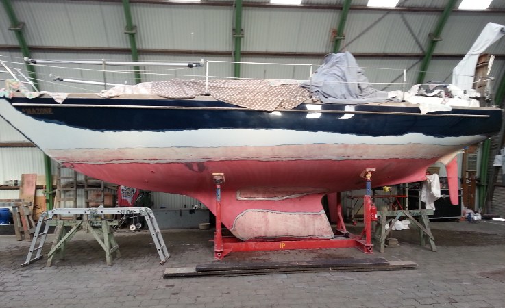 Nach unserer Heimkehr und dem Aufslippen im Herbst 2015 haben wir im Wasserpassbereich große Blasen festgestellt, die wir zur Untersuchung geöffnet haben. Unsere Amazone hatte zwar im Jahr 2002 eine Osmoseprophylaxe bei der Firma Wrede in Wedel erhalten, aber das hat offensichtlich für unsere lange Reise, während der das Boot tiefer im Wasser lag und permanent mit Wasser in Kontakt war, nicht gereicht.